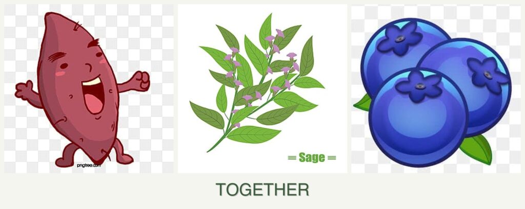 - Pest Control: Sage can deter some pests, but it doesn’t specifically benefit sweet potatoes or blueberries.