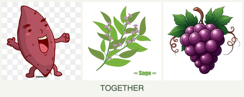 While sweet potatoes, sage, and grapes are not ideal companions, each plant can offer benefits when paired with other suitable companions: