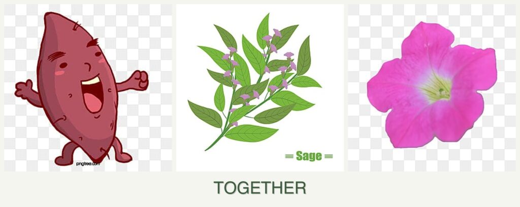 - Pest Control: Sage can repel certain pests that affect sweet potatoes, while petunias attract pollinators.