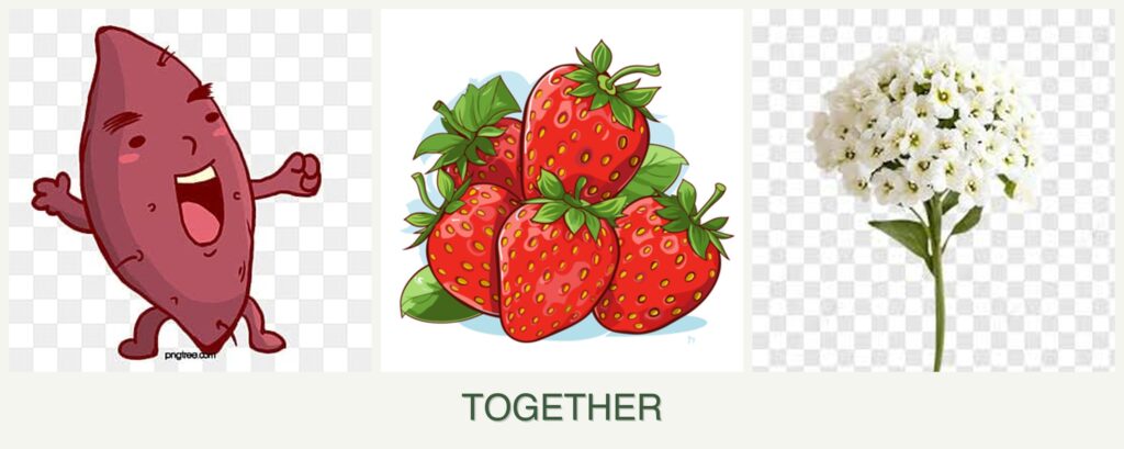 Can you plant sweet potatoes, strawberries and alyssum together?