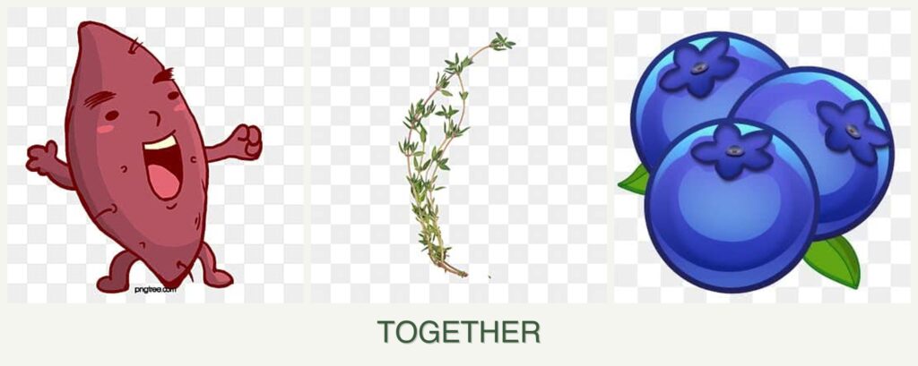 - Pest Control: Sweet potatoes and thyme can deter some pests, but blueberries do not share these properties.
