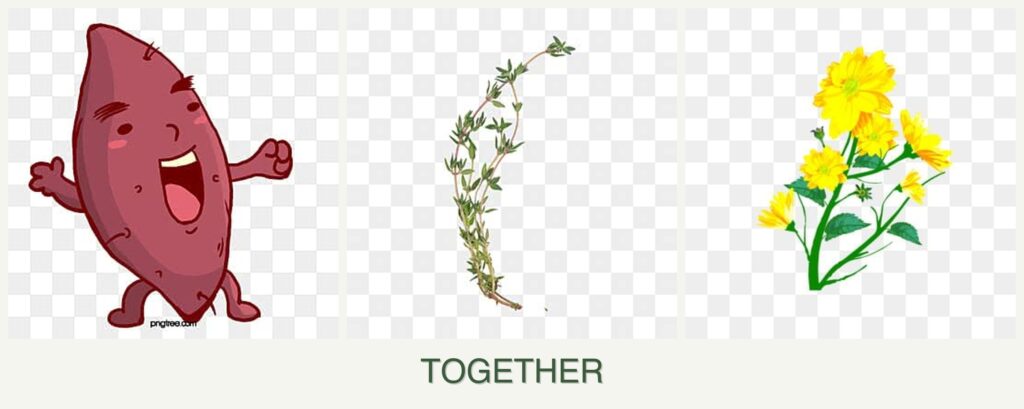 Planting sweet potatoes, thyme, and calendula together offers several benefits: