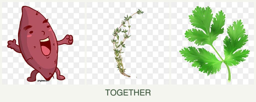 - Soil Health Benefits: Thyme and parsley help maintain soil structure and fertility, benefiting sweet potatoes.
