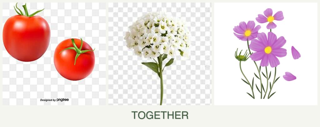 Planting tomatoes, alyssum, and cosmos together offers several benefits: