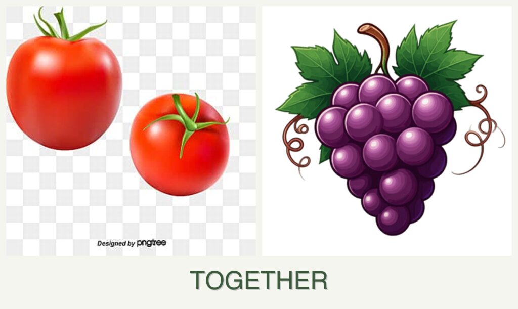 - Growth Requirements: Tomatoes are annuals, while grapes are perennials. This difference means that their life cycles and maintenance needs do not align well.