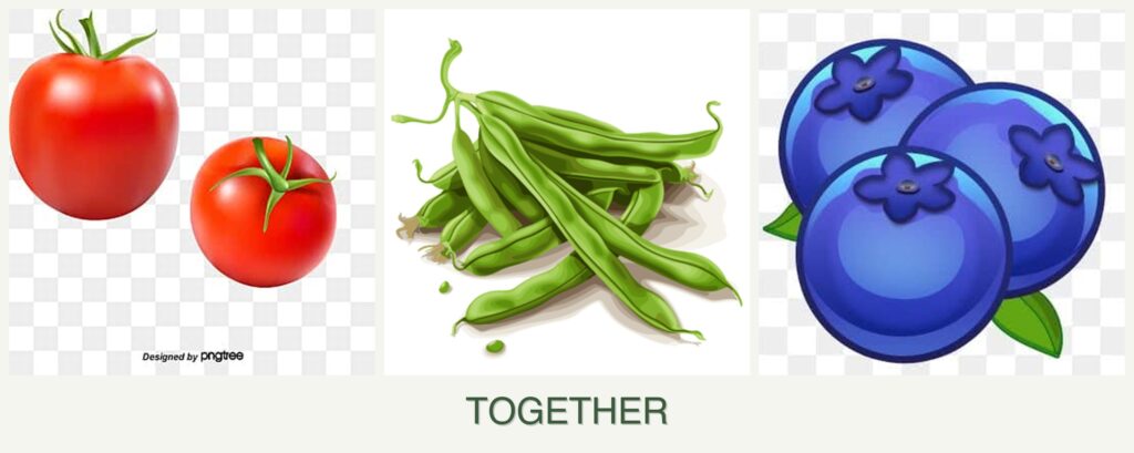 While tomatoes, beans, and blueberries are not ideal companions, planting tomatoes and beans together can offer some benefits: