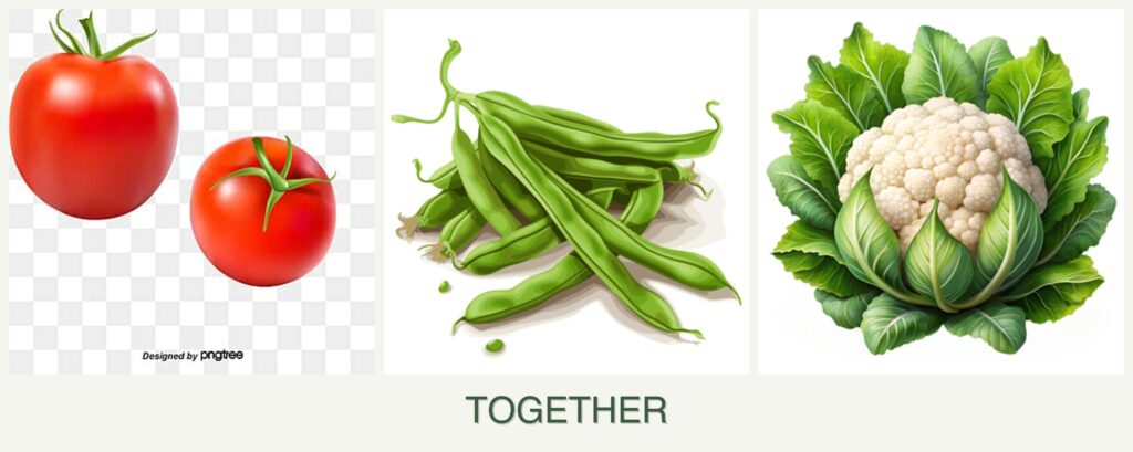- Nutrient Needs: Beans fix nitrogen in the soil, which can improve the nutrient availability for tomatoes and cauliflower.