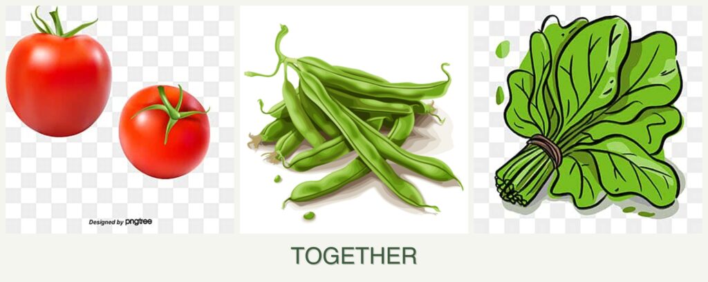 Planting tomatoes, beans, and spinach together offers several advantages: