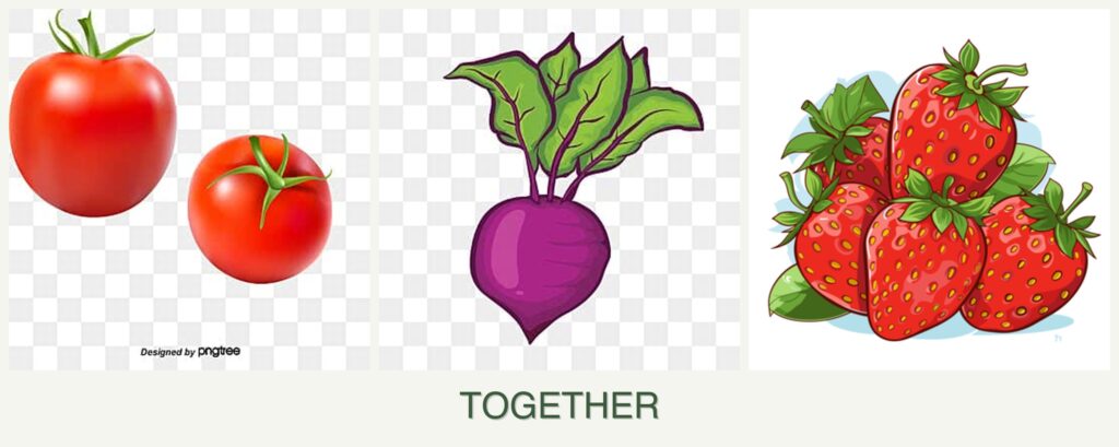 Planting tomatoes, beets, and strawberries together offers several advantages:
