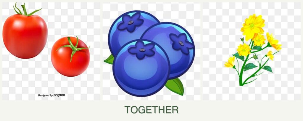 Growth Requirements: Tomatoes and calendula thrive in similar conditions, preferring full sun and well-drained soil. Blueberries, however, require acidic soil with a pH of 4.5 to 5.5, which is not suitable for tomatoes and calendula.