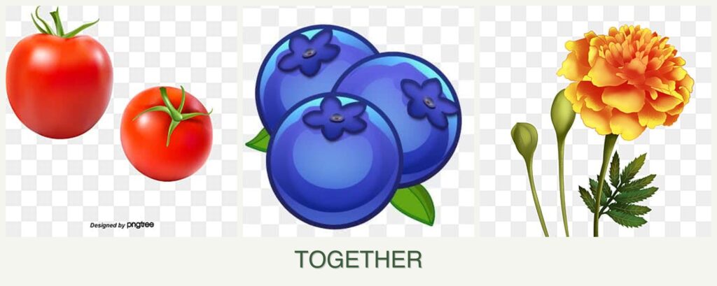 Timing: Plant marigolds and tomatoes after the last frost. Blueberries should be planted in early spring or fall.