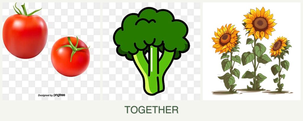 - Pest Control: Sunflowers attract pollinators and beneficial insects, while tomatoes can deter pests harmful to broccoli.