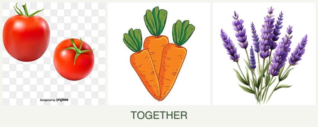 Planting tomatoes, carrots, and lavender together offers several benefits: