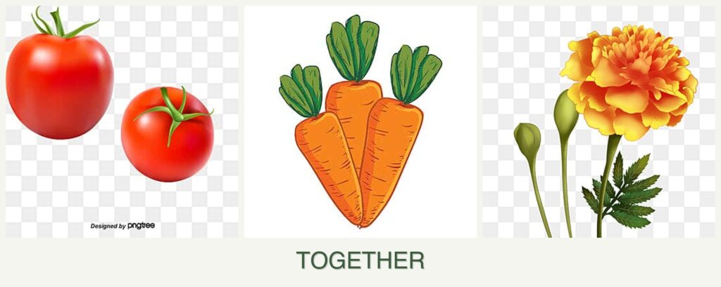 Planting tomatoes, carrots, and marigolds together offers several benefits: