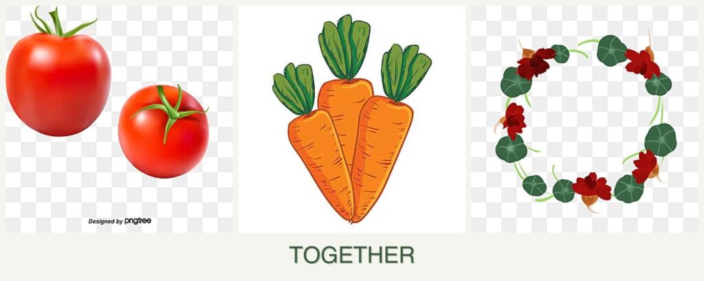 Planting tomatoes, carrots, and nasturtiums together offers several benefits:
