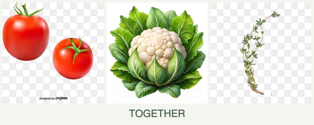 - Growth Requirements: Tomatoes and thyme thrive in similar conditions, while cauliflower prefers cooler temperatures.