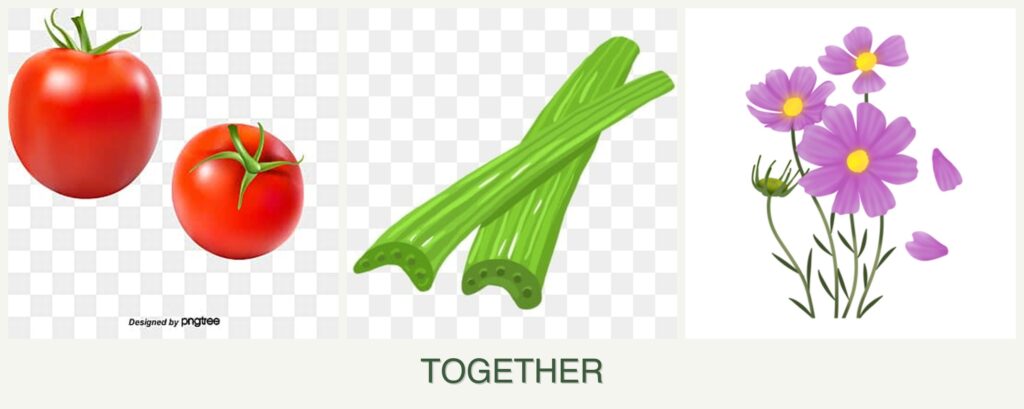 Celery can enhance the flavor of tomatoes by naturally boosting the soil’s nutrient profile. Additionally, cosmos can serve as a natural trellis for tomatoes, providing support as they grow.
