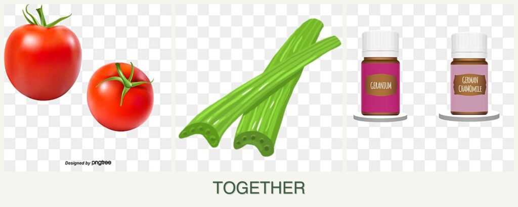 Planting tomatoes, celery, and geraniums together can offer several advantages: