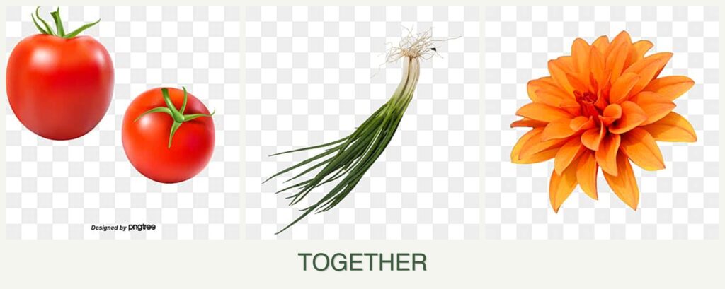 Planting tomatoes, chives, and dahlias together offers several advantages: