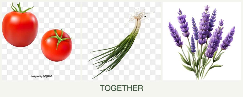 Planting tomatoes, chives, and lavender together can offer several advantages: