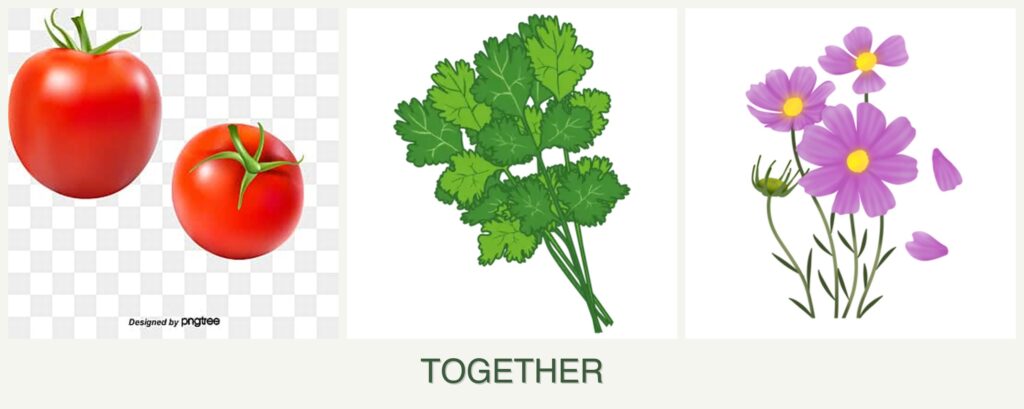 Planting tomatoes, cilantro, and cosmos together offers several benefits: