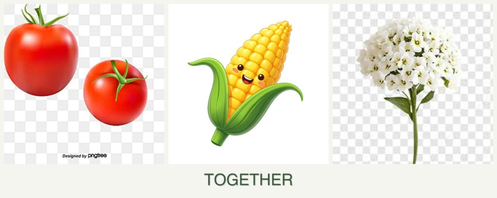 Planting tomatoes, corn, and alyssum together offers several advantages: