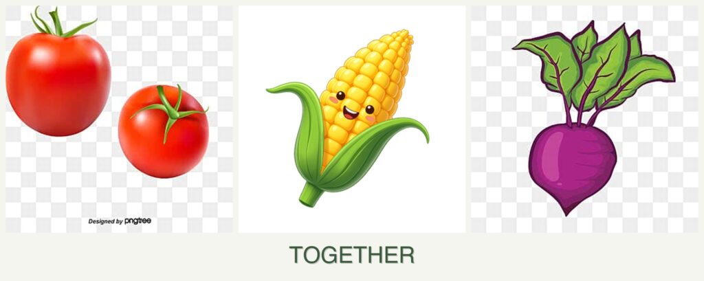 Timing: Plant corn first, followed by tomatoes and beets, as corn provides natural support.