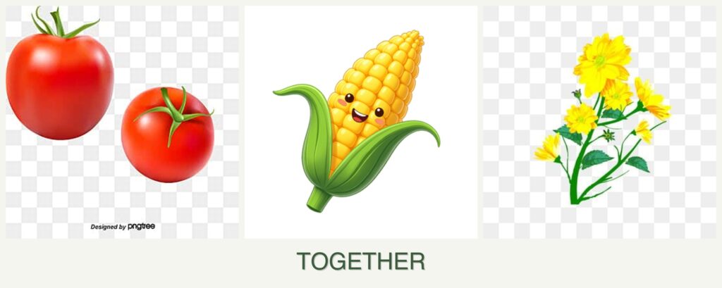 Planting tomatoes, corn, and calendula together offers numerous advantages: