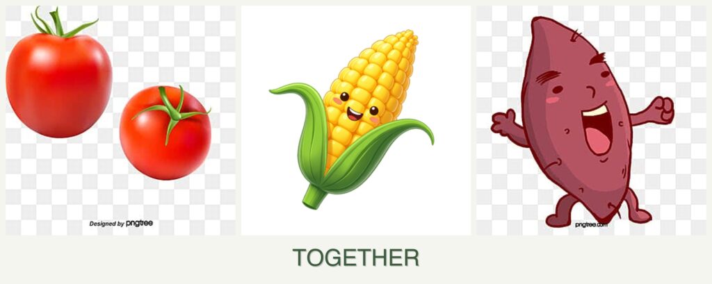 Can you plant tomatoes, corn and sweet potatoes together?