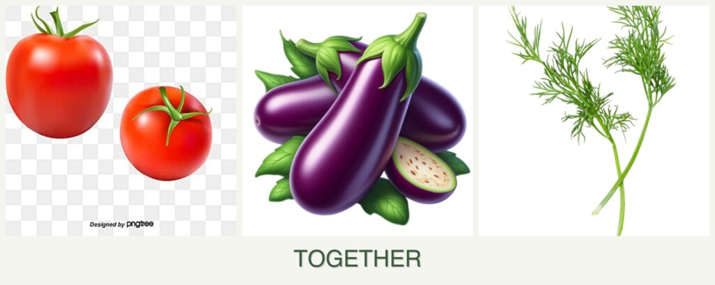 - Growth Requirements: Tomatoes and eggplants require similar sunlight and soil conditions, whereas dill prefers cooler temperatures.