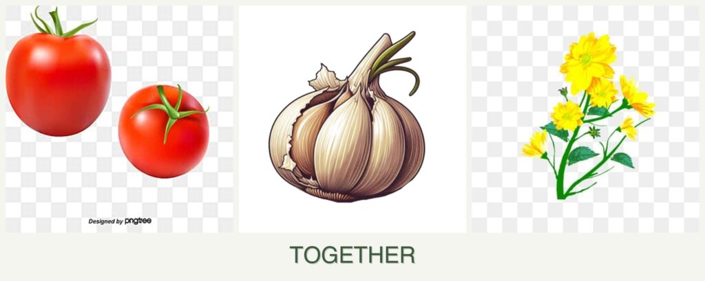 - Growth Requirements: Tomatoes and calendula prefer full sun, while garlic can tolerate partial shade. All three thrive in well-drained, nutrient-rich soil.