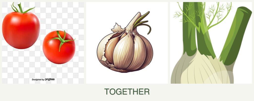 - Growth Requirements: Tomatoes and garlic share similar sunlight and soil needs, but fennel’s allelopathic properties can disrupt their growth.