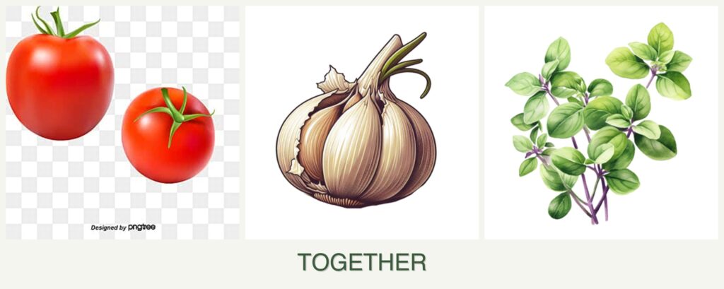 Planting tomatoes, garlic, and oregano together offers several benefits: