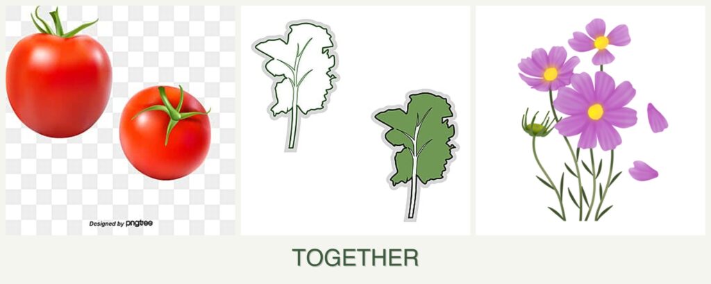 Planting tomatoes, kale, and cosmos together offers several advantages: