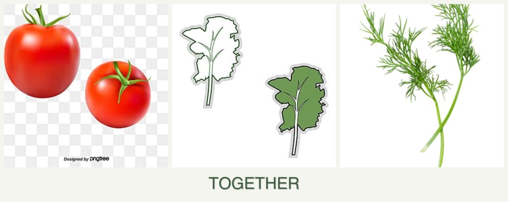 - Pest Control: Dill attracts beneficial insects that prey on pests harmful to tomatoes and kale.