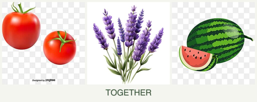 - Different Watering Needs: Lavender’s low water requirement contrasts with the higher needs of tomatoes and melons.