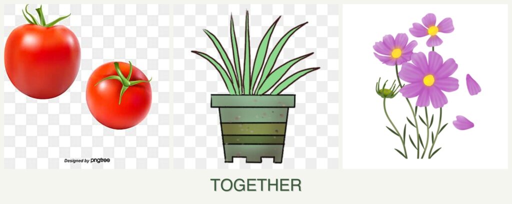 What should not be planted with tomatoes, lemongrass, and cosmos?