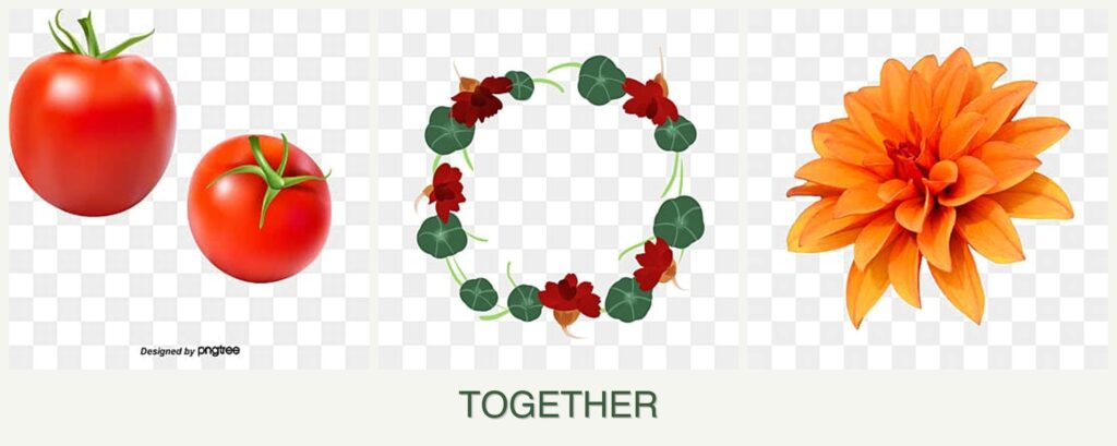 Planting tomatoes, nasturtiums, and dahlias together offers several benefits: