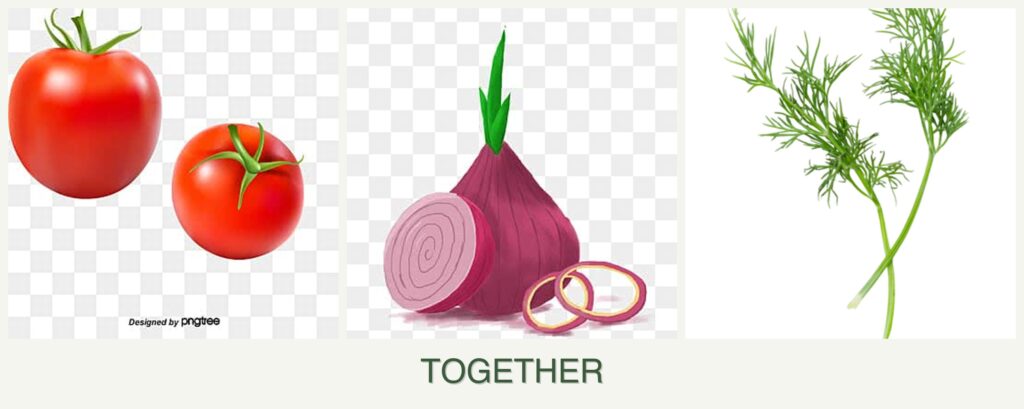 - Timing: Plant onions and dill early in the season; tomatoes should be planted after the last frost.