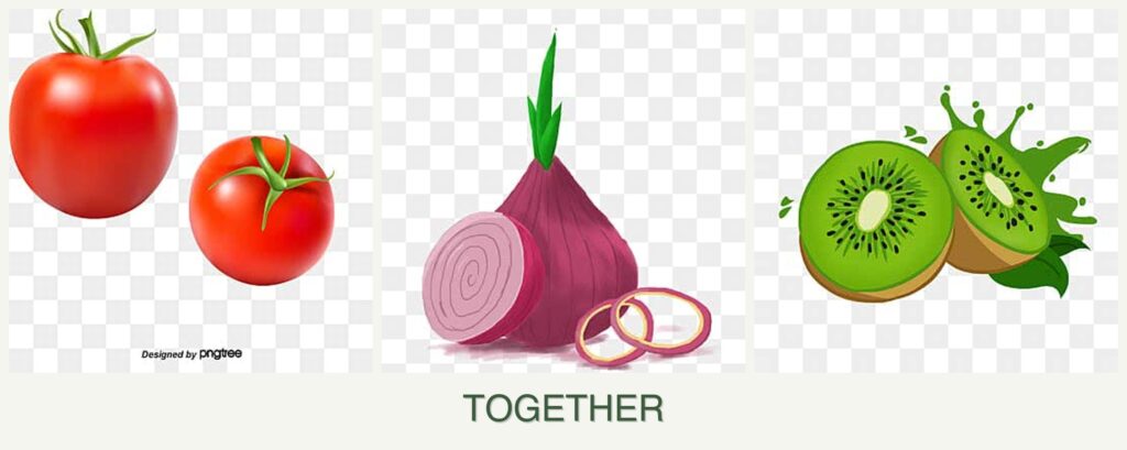 Growth Requirements: Tomatoes and onions thrive in similar conditions, preferring full sun and well-drained soil. Kiwi, however, requires a more specific environment with support structures for its vining growth.
