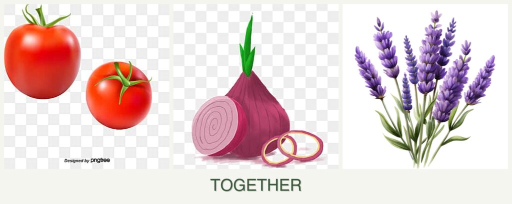 - Nutrient Needs: Tomatoes and onions have similar nutrient requirements, but lavender thrives in less fertile soil.