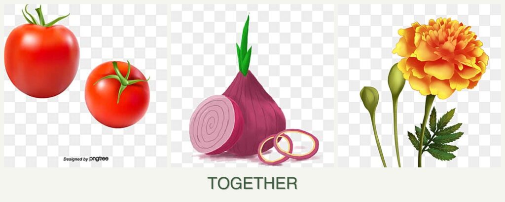 - Pest Control: Marigolds are known for their pest-repelling properties, especially against nematodes, which can harm tomatoes. Onions can deter pests like aphids and mites.