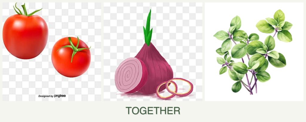 - Growth Requirements: Tomatoes and oregano both thrive in full sun and well-drained soil, while onions can tolerate partial shade, making them adaptable to different garden layouts.