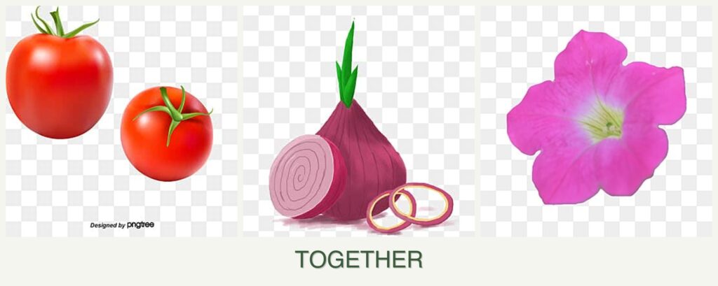 Planting tomatoes, onions, and petunias together offers several benefits: