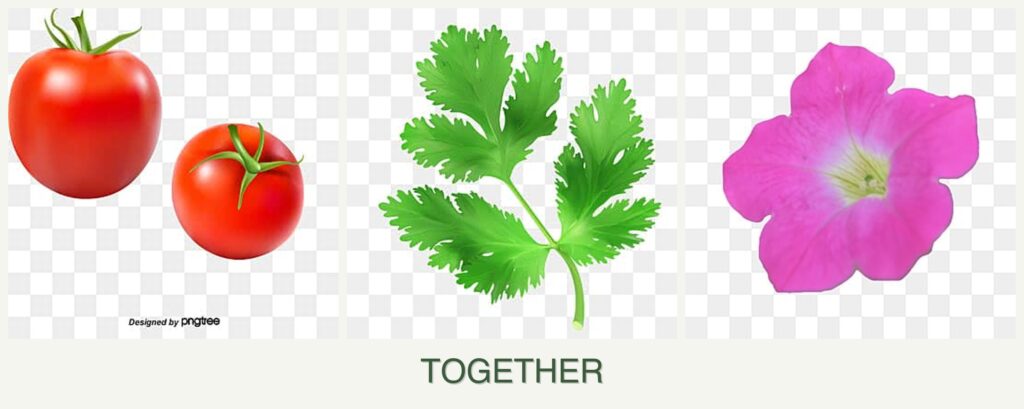 Planting tomatoes, parsley, and petunias together provides several benefits:
