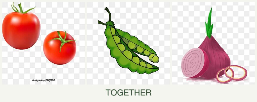 Planting tomatoes, peas, and onions together can offer several advantages: