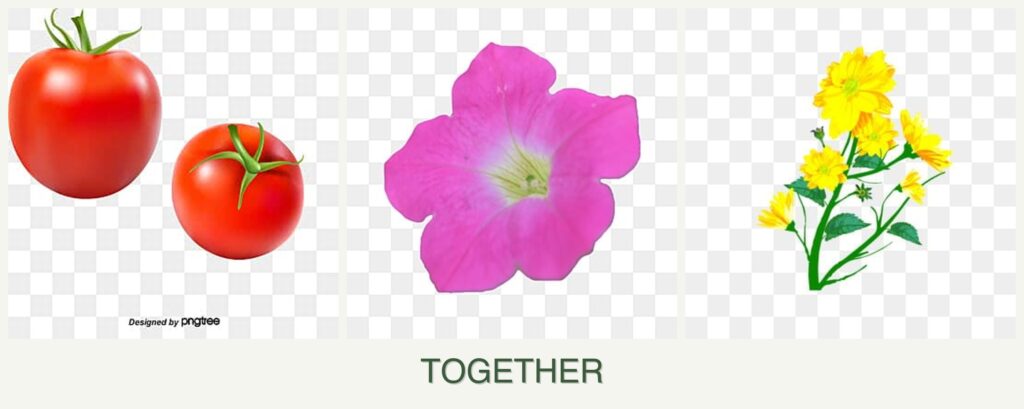 Improved Growth and Flavor: The presence of petunias and calendula can enhance the growth environment for tomatoes by attracting pollinators and beneficial insects.
