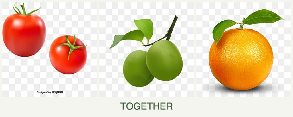 Growth Requirements: Tomatoes thrive in warm, sunny environments with rich, well-draining soil. Plums and oranges also need full sun but have different soil and climatic preferences.