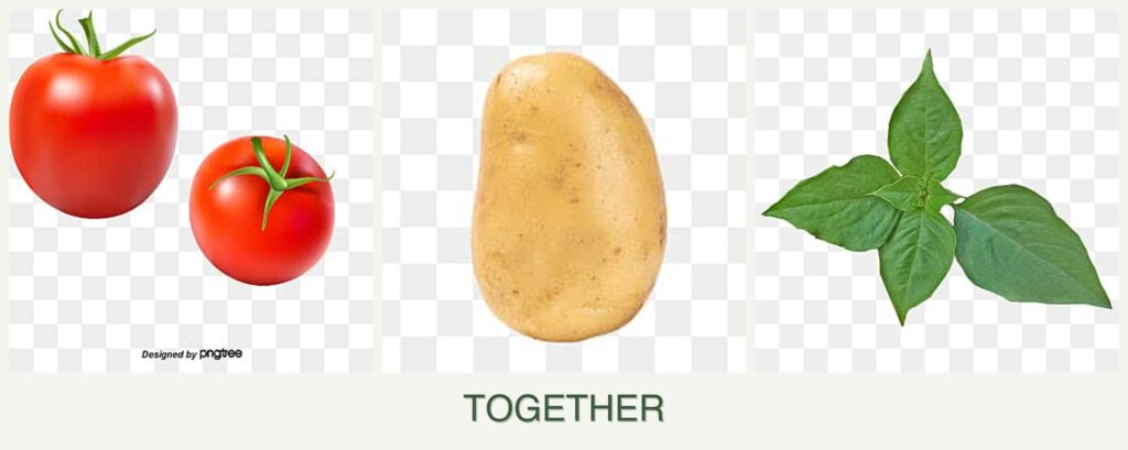 - Nutrient Needs and Spacing: Tomatoes and basil can be interplanted with adequate spacing, whereas potatoes need more room to spread underground.