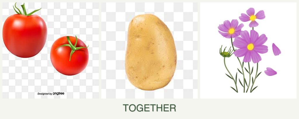 - Growth Requirements: Tomatoes and potatoes have similar nutrient needs but different space requirements. Cosmos, being a flower, has different light and water needs.